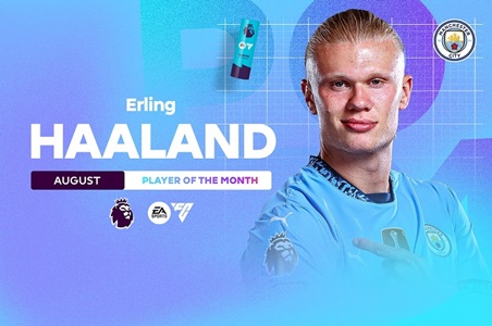 เออร์ลิ่ง ฮาลันด์ กองหน้าของ แมนเชสเตอร์ ซิตี้ คว้ารางวัลนักเตะยอดเยี่ยมประจำเดือนสิงหาคมของพรีเมยร์ลีก หลังเริ่มฤดูกาลด้วยฟอร์มเยี่ยมซัด 7 ตุงจาก 3 นัดแรก