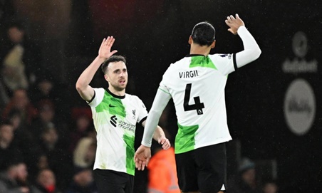 จาเรลล์ ควอนซ่าห์ แนวรับดาวรุ่ง ก่อความผิดพลาดต้นครึ่งหลัง เสียบอลแดนกลางโดน บรูโน่ แฟร์นานเดส ยิงครึ่งสนามข้ามหัว ควีมิน เคลเลเฮอร์ แต่ ฟาน ไดจ์ค ยังให้กำลังใจรุ่นน้องร่วมตำแหน่ง