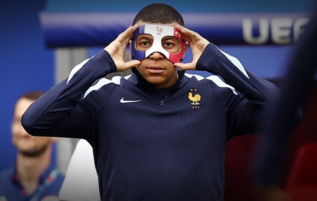 ดิ แอธเลติก สื่อกีฬารายงาน กฎ ยูฟ่า ห้ามไม่ให้ คิลิยัน เอ็มบัปเป้ กองหน้ากัปตัน ฝรั่งเศส ใช้หน้ากากลายธงชาติที่ใส่ลงซ้อม ในการแข่งจริงศึก ยูโร 2024