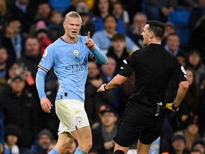 ฮาลันด์ ตอบโต้ด้วยการยิงประตูที่ 21 ในพรีเมียร์ ลีกของฤดูกาลนี้ ก่อนที่ตัวเขาจะได้รับใบเหลืองจากจังหวะเข้าตัดบอลใส่วิตาลีย์ มีโกเลนโก้ ในนาทีที่ 44