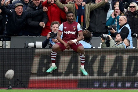 เวสต์แฮม เปิดบ้านพบกับ แมนฯ ยูไนเต็ด ที่ฟอร์มกำลังย่ำแย่มาและพวกเขาไม่ปล่อยโอกาสนี้ให้หลุดมือไปหลังได้ จาร์ร็อด โบเว่น ยิงประตูนำ