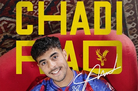 แถลงการณ์ระบุว่า "คริสตัล พาเลซ ยินดีประกาศการมาของชาดี้ ริอาด นักเตะทีมชาติโมร็อกโก ด้วยสัญญาระยะยาว"