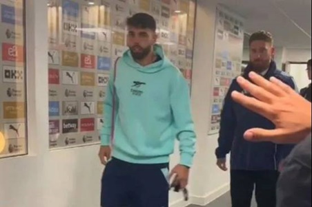 มีจังหวะที่เขานั่งลงกับพื้นให้ทีมแพทย์เข้ามาเช็คอาการ โดยให้เพื่อนร่วมทีมที่เหลือเข้าไปรับคำแนะนำจาก มิเกล อาร์เตต้า ที่ข้างสนาม