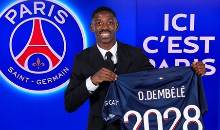 ปารีส แซงต์ แชร์กแมง ได้ฤกษ์เปิดตัว อุสมาน เด็มเบเล่ เป็นการเสริมทัพรายที่ 10 ในซัมเมอร์นี้หลังคว้าเขามาจาก บาร์เซโลน่า ด้วยค่าตัว 50.4 ล้านยูโร